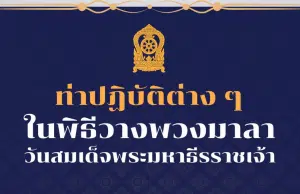 ท่าปฎิบัติในพิธีวางพวงมาลา วันสมเด็จพระมหาธีรราชเจ้า 25 พฤศจิกายน