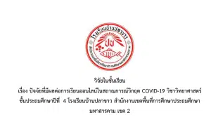 เผยแพร่ผลงานวิจัยในชั้นเรียน เรื่อง ปัจจัยที่มีผลต่อการเรียนออนไลน์ในสถานการณ์วิกฤต COVID-19 วิชาวิทยาศาสตร์ ชั้นประถมศึกษาปีที่ 4 โรงเรียนบ้านปลาขาว สำนักงานเขตพื้นที่การศึกษาประถมศึกษามหาสารคาม เขต 2 โดย นางดวงใจ ปะวะเท