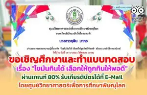 ศึกษาและทำแบบทดสอบออนไลน์ เรื่อง “tack care of your eyes. รวมเรื่องน่ารู้เกี่ยวกับคอนแทคเลนส์” ผ่านเกณฑ์ 80% รับเกียรติบัตรได้ที่ E-Mail โดยศูนย์วิทยาศาสตร์เพื่อการศึกษาพิษณุโลก