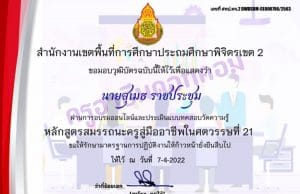 แบบทดสอบออนไลน์หลักสูตรพัฒนาสมรรถนะครูสู่มืออาชีพในศตวรรษที่ 21 ผ่านเกณฑ์ 80% รับเกียรติบัตรทางอีเมล โดย สพป.พิจิตร เขต 2