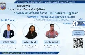 อบรมออนไลน์เชิงปฏิบัติการ เรื่องเทคนิคและเครื่องมือในการ ประเมินสมรรถนะผู้เรียน วันที่ 11 กันยายน 2565 รับเกียรติบัตรฟรี โดยคณะศึกษาศาสตร์ มหาวิทยาลัยนเรศวร