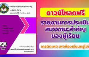 ดาวน์โหลดฟรี รายงานการประเมินสมรรถนะสำคัญของผู้เรียน ไฟล์ Excel แก้ไขได้ เครดิตเพจ ห้องเรียนครูไข่นุ้ย