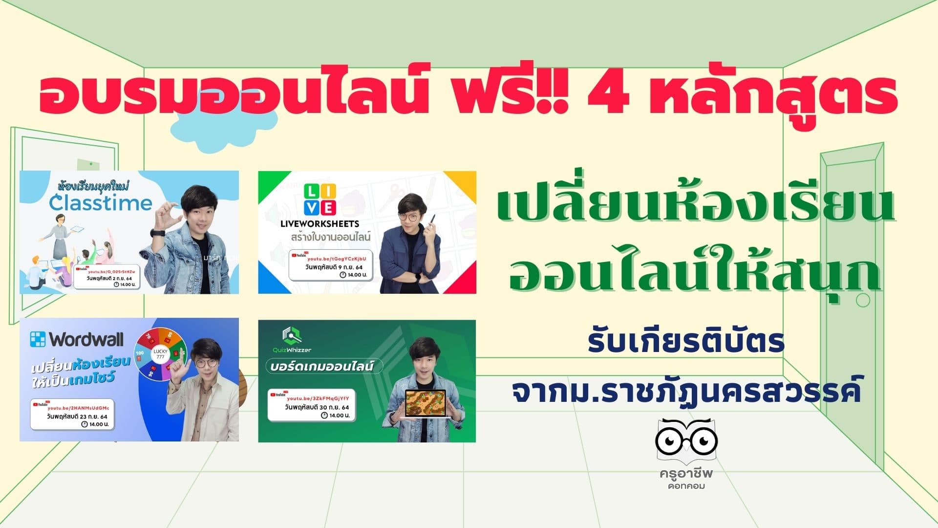 อบรมออนไลน์ ฟรี!! 4 หลักสูตรเปลี่ยนห้องเรียนออนไลน์ให้สนุก ตลอดเดือนกันยายน รับเกียรติบัตร จากมหาวิทยาลัยราชภัฏนครสวรรค์