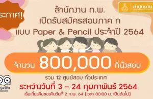 สำนักงาน ก.พ. เปิดรับสมัครสอบภาค ก แบบ Paper&Pencil ประจำปี 2564 วันที่ 3 - 24 กุมภาพันธ์ 2564 จำนวน 800,000 ที่นั่งสอบ