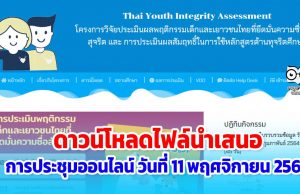 ดาวน์โหลดไฟล์นำเสนอ การประเมินผลพฤติกรรมเด็กและเยาวชนไทยที่ยึดมั่นความซื่อสัตย์สุจริต ในการใช้หลักสูตรต้านทุจริตศึกษา การประชุม วันที่ 11 พฤศจิกายน 2564