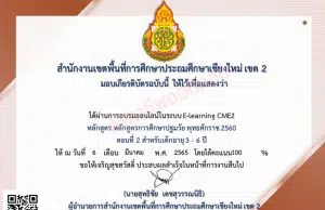 อบรมออนไลน์ หลักสูตร หลักสูตรการศึกษาปฐมวัยพุทธศักราช 2560 ตอนที่ 2 สำหรับเด็กอายุ 3 -6 ปี ผ่าน 70 % รับเกียรติบัตรทันที โดย สพป.เชียงใหม่ เขต 2