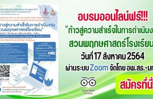 สมัครด่วนจำนวนจำกัด!! เปิดอบรมหลักสูตร “ก้าวสู่ความสําเร็จในการดําเนินงาน สวนพฤกษศาสตร์โรงเรียน” วันที่ 17 สิงหาคม 2564 ผ่านระบบ Zoom โดยอพ.สธ.-มทส.