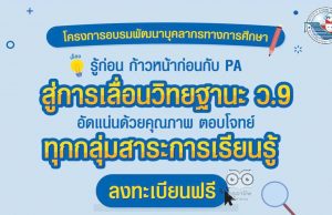 อบรมออนไลน์ฟรี มีเกียรติบัตร “รู้ก่อน ก้าวหน้าก่อนกับ PA สู่การเลื่อนวิทยฐานะ ว.9 ทุกกลุ่มสาระการเรียนรู้” โดยสถาบันพัฒนาคุณภาพวิชาการ (พว.)