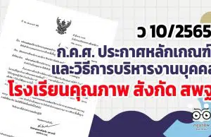 ก.ค.ศ. ประกาศหลักเกณฑ์และวิธีการบริหารงานบุคคลของข้าราชการครูและบุคลากรทางการศึกษา สำหรับโรงเรียนคุณภาพ สังกัด สพฐ. ว 10/2565