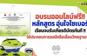 ขอเชิญอบรมออนไลน์ฟรี!! หลักสูตร อุ่นใจไซเบอร์ เรียนจบรับเกียรติบัตรทันที ใช้ประกอบการขอมีหรือเลื่อนวิทยฐานะได้ นับได้ 9 ชั่วโมง