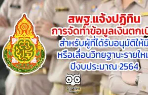 สพฐ.แจ้งปฏิทิน การจัดทำข้อมูลเงินตกเบิก สำหรับผู้ที่ได้รับอนุมัติให้มีหรือเลื่อนวิทยฐานะรายใหม่ ปีงบประมาณ 2564