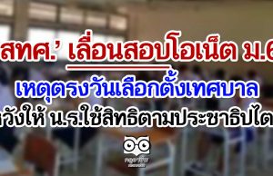 ‘สทศ.’ เลื่อนสอบโอเน็ต ม.6 เหตุตรงวันเลือกตั้งเทศบาล หวังให้ น.ร.ใช้สิทธิตามประชาธิปไตย