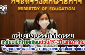ตรีนุช มอบ รร.ทำกิจกรรมเตรียมเปิดภาคเรียนช่วง 17-31 พฤษภาคม “ทั้งออนไลน์-ออฟไลน์” ตามความเหมาะสมในแต่ละพื้นที่