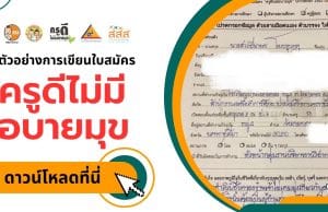 ตัวอย่างแนวทางการเขียนใบสมัคร ครูดีไม่มีอบายมุข ปีที่ 9 โดยครูธีมาพร โมบขุนทด