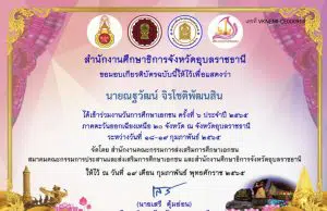 แบบประเมินความพึงพอใจการจัดงานวันการศึกษาเอกชน ปี 2565 ภาคตะวันออกเฉียงเหนือ รับเกียรติบัตรโดย ศธจ.อุบลราชธานี