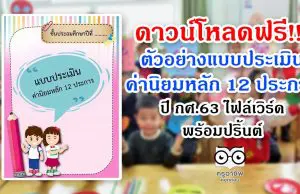 ดาวน์โหลดฟรี!! ตัวอย่างแบบประเมินค่านิยมหลัก 12 ประการ ปี กศ.63 ไฟล์เวิร์ด พร้อมปริ้นต์