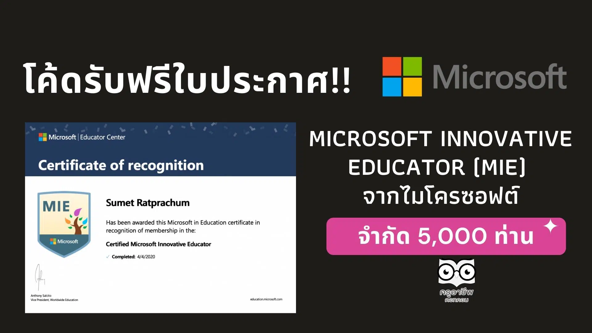 โค้ดรับฟรีใบประกาศ Microsoft Innovative Educator (MIE) จากไมโครซอฟต์ จำกัด 5,000 ท่าน