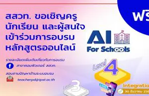 สสวท.เปิดอบรมออนไลน์หลักสูตร “AI For Schools Level 4” รุ่น 2 รับใบประกาศฟรี!! สมัครได้ตั้งแต่ 15...