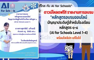 ดาวน์โหลดเลย!! รายงานการอบรมหลักสูตรปัญญาประดิษฐ์สำหรับโรงเรียน หลักสูตร ๑-๔ (AI for Schools Level 1-4) พร้อมไฟล์ปก แก้ไขได้