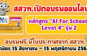 สสวท.เปิดอบรมออนไลน์หลักสูตร “AI For Schools Level 4” รุ่น 2 รับใบประกาศฟรี!! สมัครได้ตั้งแต่ 15...