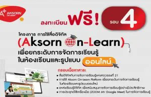 ด่วนลงทะเบียนก่อนเต็ม!! อบรมออนไลน์ฟรี การใช้สื่อดิจิทัล (Aksorn On-Learn) เพื่อยกระดับการจัดการเรียนรู้ในห้องเรียนและรูปแบบออนไลน์ รอบ 6