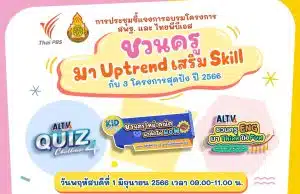 สพฐ. ชวนครูมาUptrendเสริม Skill กับ 3 โครงการสุดปังปี 2566 ประกอบด้วย โครงการ Kid Rangers ชวนครูวิทย์-คณิต มาคิดให้ว้าวปีที่ 7, โครงการ ALTV ชวนครู ENG มา THINK ให้ FUN และโครงการ ALTV QUIZ CHALLENGE