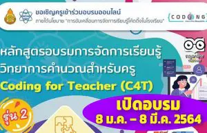 สพฐ. ร่วมกับสสวท. เปิดอบรมออนไลน์หลักสูตร C4T รุ่น 2 ระหว่างวันที่ 8 มกราคม – 8 มีนาคม 2564