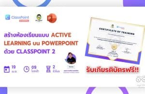ลิงก์แบบประเมิน รับเกียรติบัตรฟรี สร้างห้องเรียนแบบ Active Learning บน PowerPoint ด้วย ClassPoint 2 วันพุธที่ 19 เมษายน 2566 รับเกียรติบัตรฟรี