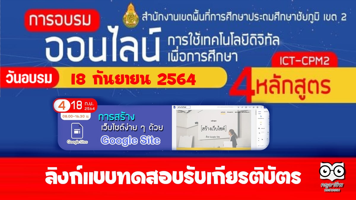 ลิงก์โหลดเกียรติบัตรออนไลน์ หลักสูตรที่ 4 การสร้างเว็บไซต์ ง่ายๆด้วย Google Sites วันที่ 18 กันยายน 2564 โดย สพป.ชัยภูมิ เขต 2