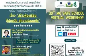 อบรมเชิงปฏิบัติการโรงเรียนปลอดภัยครั้งที่ 31 เรื่อง "เรียนรู้ความปลอดภัยในโลกยุคศตวรรษที่ ๒๑ เรื่อง สร้างการเรียนรู้ เสริมทักษะความปลอดภัย" วันที่ 16 มีนาคม 2567 เรียนรู้ฟรี ไม่มีค่าใช้จ่าย โดยมหาวิทยาลัยมหิดล