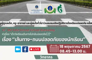 อบรมเชิงปฏิบัติการโรงเรียนปลอดภัยครั้งที่ 32 เรื่อง เส้นทาง-ถนนปลอดภัยของนักเรียน วันที่ 18 พฤษภาคม 2567 เรียนรู้ฟรี ไม่มีค่าใช้จ่าย โดยมหาวิทยาลัยมหิดล