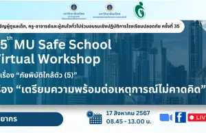 ลงทะเบียนอบรมเชิงปฏิบัติการโรงเรียนปลอดภัยครั้งที่ 35 เรื่อง ภัยพิบัติใกล้ตัว (5) “เตรียมความพร้อมต่อเหตุการณ์ไม่คาดคิด” วันที่ 17 สิงหาคม 2567 เรียนรู้ฟรี ไม่มีค่าใช้จ่าย โดยมหาวิทยาลัยมหิดล